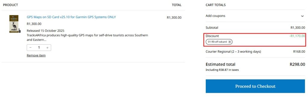 Your loyalty discount coupon for your upgrade will be automatically deducted during the checkout process on our online shop when you purchase the new SD Card. In certain cases you may have to click on your discount coupon in order to apply it to your cart total.